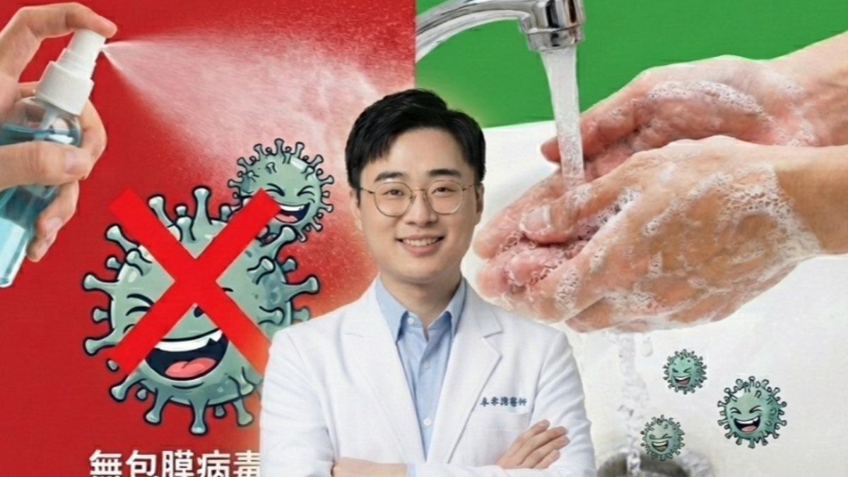諾羅病毒近日在社區內大爆發,由於傳染力強,不少民眾都感染,造成噁心、嘔吐、腹瀉及腹絞痛,就有民眾向醫師說,自己狂噴酒精仍中招。雲林長庚醫院胃腸肝膽科主治醫師卓韋儒表示,諾羅病毒沒有套膜,酒精噴上去就像「幫它洗澡」,根本殺不死,最有效的方法還是用肥皂洗手。