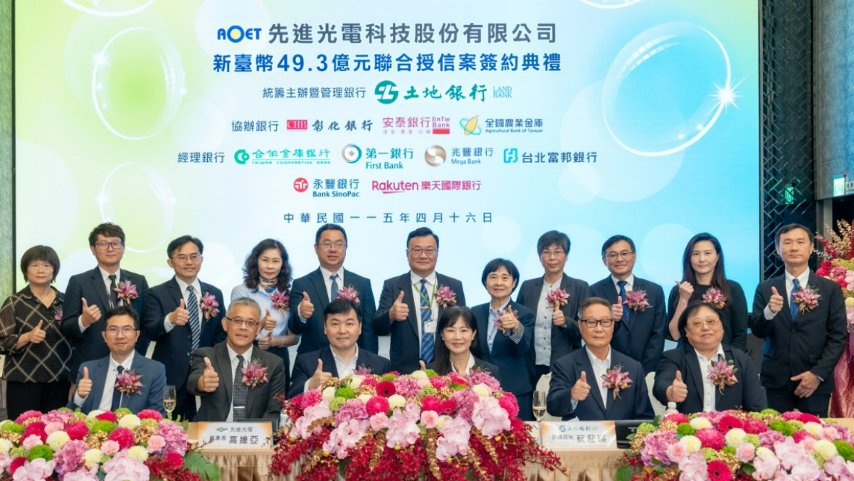 力挺本土企業深耕臺灣,土地銀行統籌主辦「先進光電新臺幣49.3億元聯貸案」且完成募集,超額認貸比例達117%,並於昨天(4/16)簽訂聯合授信合約,由銀行團代表土地銀行副總蔡慈瑛與借款人代表高維亞完成簽約,支持先進光電擴大產能,衝刺產品與供應鏈多元化。
