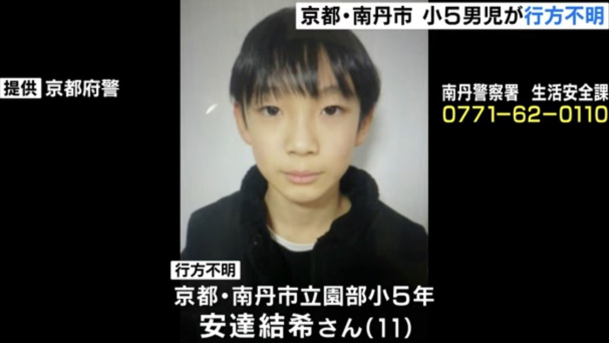 日本京都府南丹市的男童失蹤案出現重大進展,京都府警方今(4/14)日證實,13日在南丹市園部町偏遠山區發現的遺體,經法醫鑑定後,確認為失蹤多日的11歲男童安達結希。
