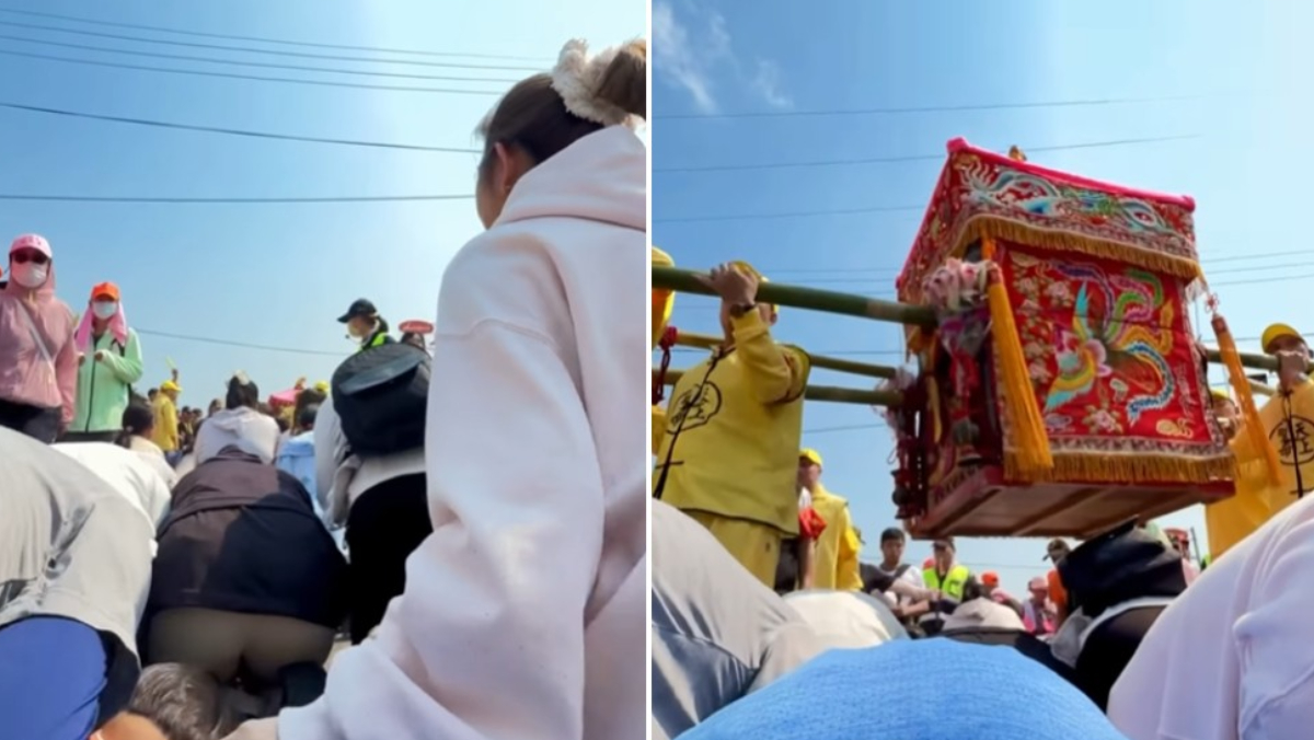「粉紅超跑」白沙屯拱天宮媽祖急行軍,今天(4/15)已經抵達雲林,距離北港只剩下最後一段路。今年共有46萬名香燈腳同行,更有不少民眾是沿路加入。藝人許維恩歷經乳癌,近日也親自投入志工行列發送飲用水給路過民眾,她更分享神蹟稱,「白沙屯媽祖指示我們要『排排跪好』」,下秒媽祖鑾轎便從頭上而過,許維恩更喊「好震撼」。