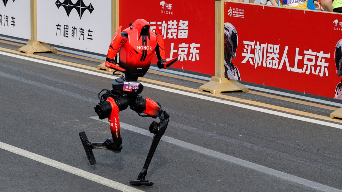 中國北京今天(4/19)舉行人形機器人的半馬賽程,超過100組機器人參加賽事。《衛報》稱去年比賽是大型事故現場,20參賽機器人許多無法完成比賽,甚至起點即終點,未能起跑;但今年「參加者」暴增5倍,冠軍速度比人類冠軍還快,雖仍有事故,但整體大幅進步,凸顯中國在此領域的雄心,以及機器人日後應用於危險工作場地到戰場作戰等各領域的巨大潛力。