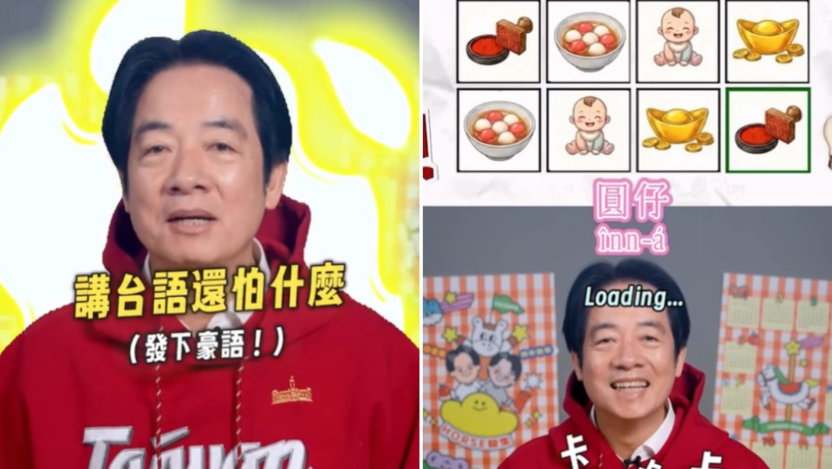 過年期間,總統賴清德展開「台語大挑戰」,一開始還自信說「講台語怕什麼」,沒想到第2關就開始落拍,第5關更直接卡爆,自嘲「這好像不是台語大挑戰,比較像節奏大考驗」。