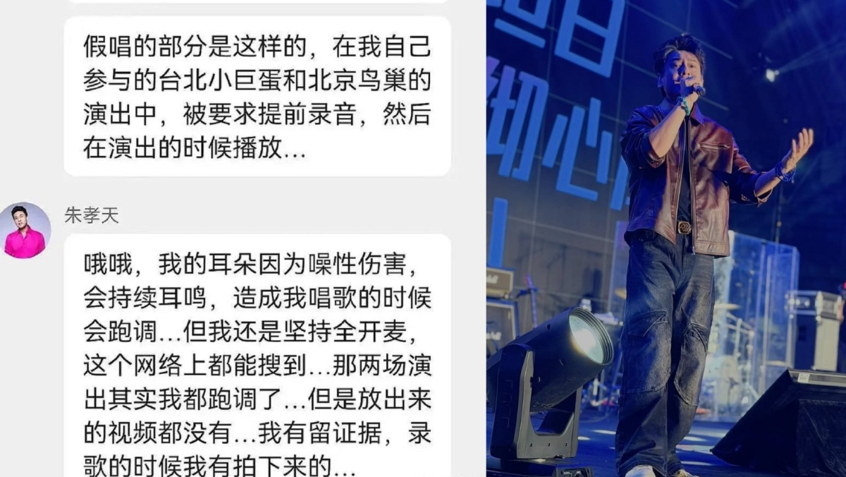 F4成員朱孝天登上熱搜,以「朱孝天」3字和大頭貼帳號的留言被截圖在網路上瘋傳,爆料自己因病唱歌容易走音,但最後公開的影片卻是正常的,暗指「大家可以琢磨一下」,再度掀起假唱爭議。