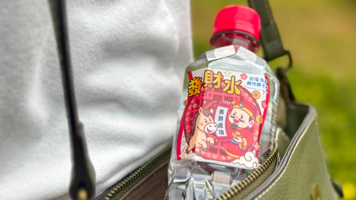 迎接金馬年春節商機,台塩公司今天宣布推出海洋鹼性離子水馬年新春限定「發財水」,以420ml輕巧瓶身搭配財神爺與Q版小馬插畫設計,鎖定走春、團聚與節慶送禮需求,搶攻年節即飲水市場。