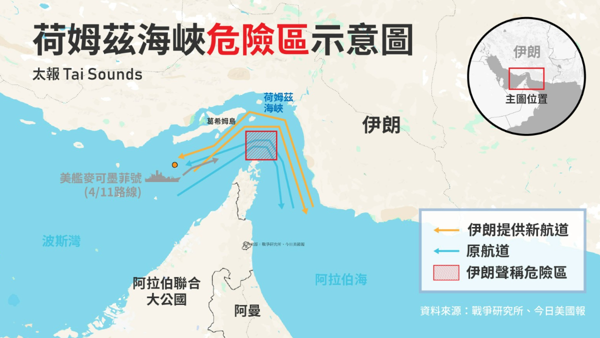 伊朗外交部長阿拉奇週五(4/17)宣布,已開放荷姆茲海峽供所有商業船隻通行;但隨後又表示,船隻只能從指定航道通過。船舶追蹤據則顯示,通過海峽的船隻仍極為稀少。伊朗國會議長卡利巴夫則表示,若美軍持續封鎖伊朗港口,不會維持荷姆茲海峽開放。