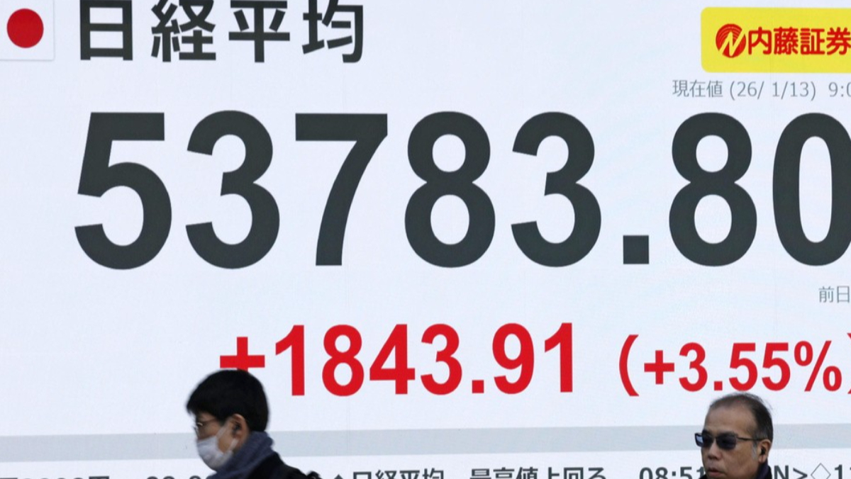 受日本首相高市早苗有意解散國會眾議院、下月舉行改選的影響,日股連兩天創新高,14日以5萬4341點作收,首度站上5萬4000點大關。日圓則受財政惡化的市場憂慮氣氛影響而持續拋售,美元兌日圓匯價跌破159關卡。