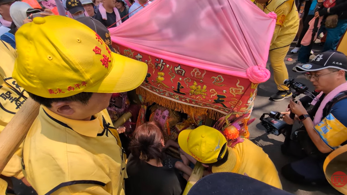 「粉紅超跑」白沙屯媽祖徒步進香12日深夜起駕前往北港天后宮,沿途吸引大批信眾祈求媽祖賜福。昨(14日)進入彰化市,一名母親抱著腦麻兒在中山路上等待媽祖鑾轎,媽祖不僅在兩人面前停留5分多鐘,甚至讓孩子的小手貼在轎上,雖然現場轎班汗如雨下,媽祖暖心擁抱病童的舉動,讓信眾直呼感動。