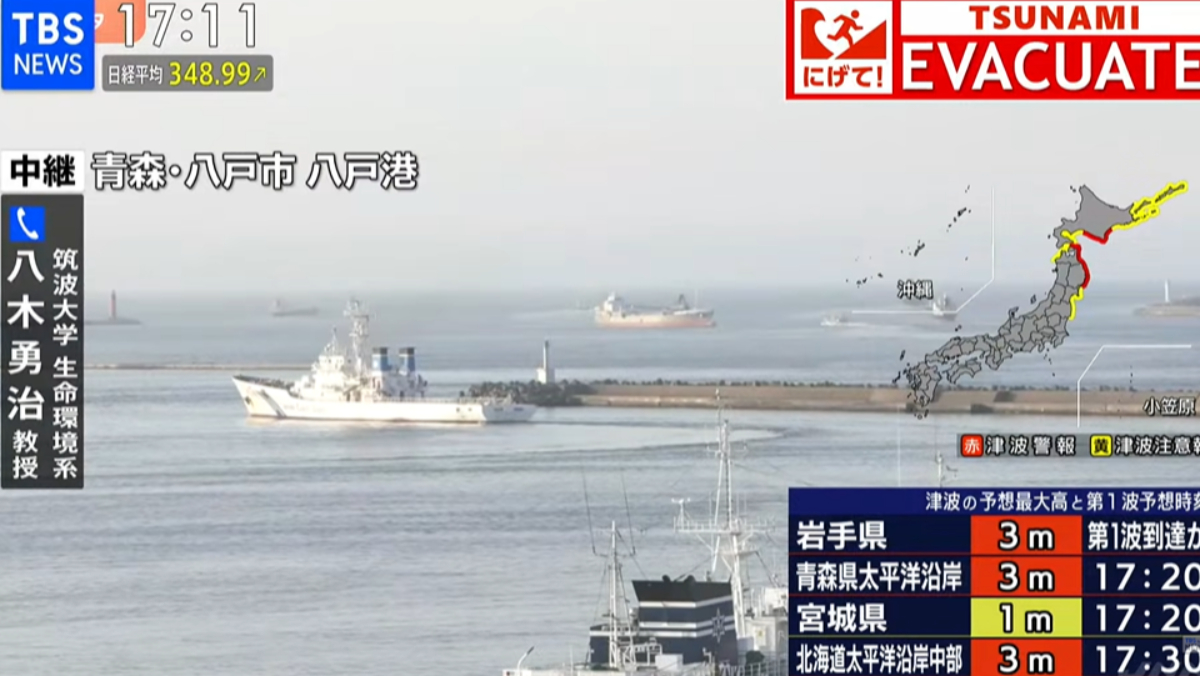 據日本媒體今天(4/20)報導,日本東北青森縣東部海域,下午發生規模7.5地震,專家示警,不排除出現規模6左右的餘震,且這次震源極淺,可能造成大海嘯,他說明,通常港口的浪較高,因此船員會將船駛往外海,減低海嘯造成的損害。