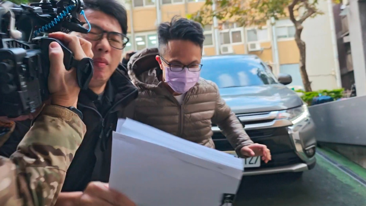 警政署保二總隊警員林育丞,在離職前竟以假槍調包真槍,台北地檢署今(3/13)日發動搜索拘提,不料保二將林男移送北檢時,疑為了不讓記者拍攝,負責戒護的警員竟像橄欖球四分衛,挾著林男朝記者衝撞,甚至車輛要駛離時撞到後方記者,涉嫌肇事逃逸。