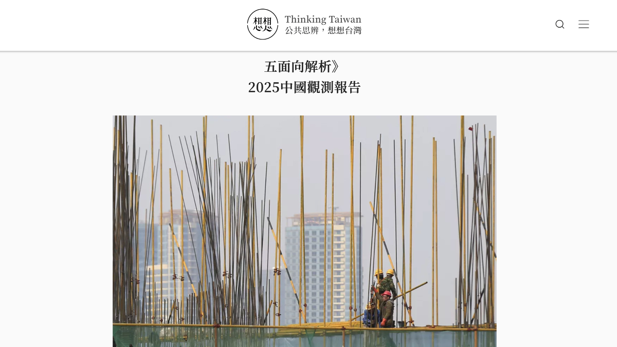 前總統蔡英文創立的「想想論壇」,今(1/23)發布「2025中國觀測報告」,從經濟、金融、財政、社會及政治等五大面向,共50項觀測指標審視中國內部情勢趨向。