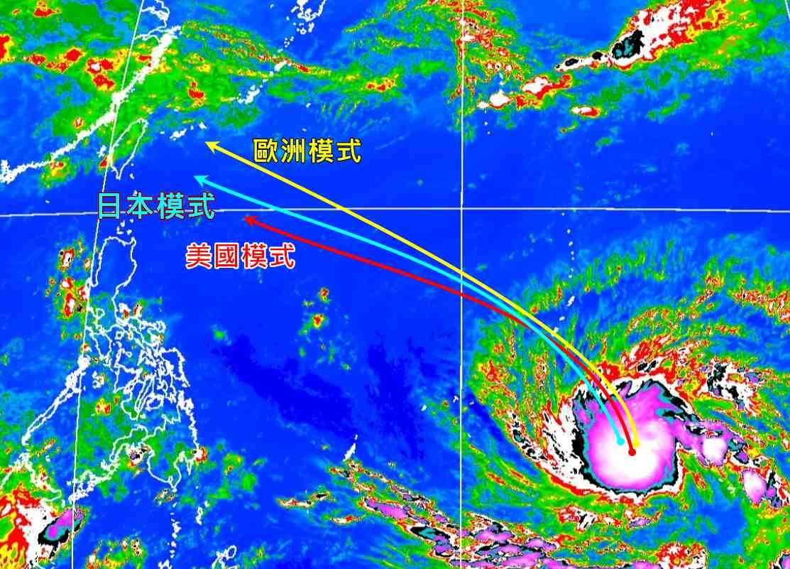 「觀氣象看天氣」臉書粉絲頁表示歐、美、日電腦預測模式約7天後的路徑圖皆有差異,但都預測將移動到台灣東方至東南方海面,「老話一句,還有一段時間變數很大,須隨時觀察更新」。