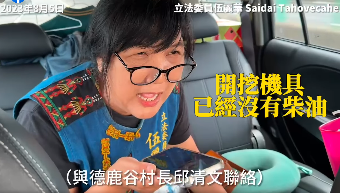 民進黨立委伍麗華勘災,也透過電話了解仁愛鄉部落居民的需求。取自立委伍麗華臉書
