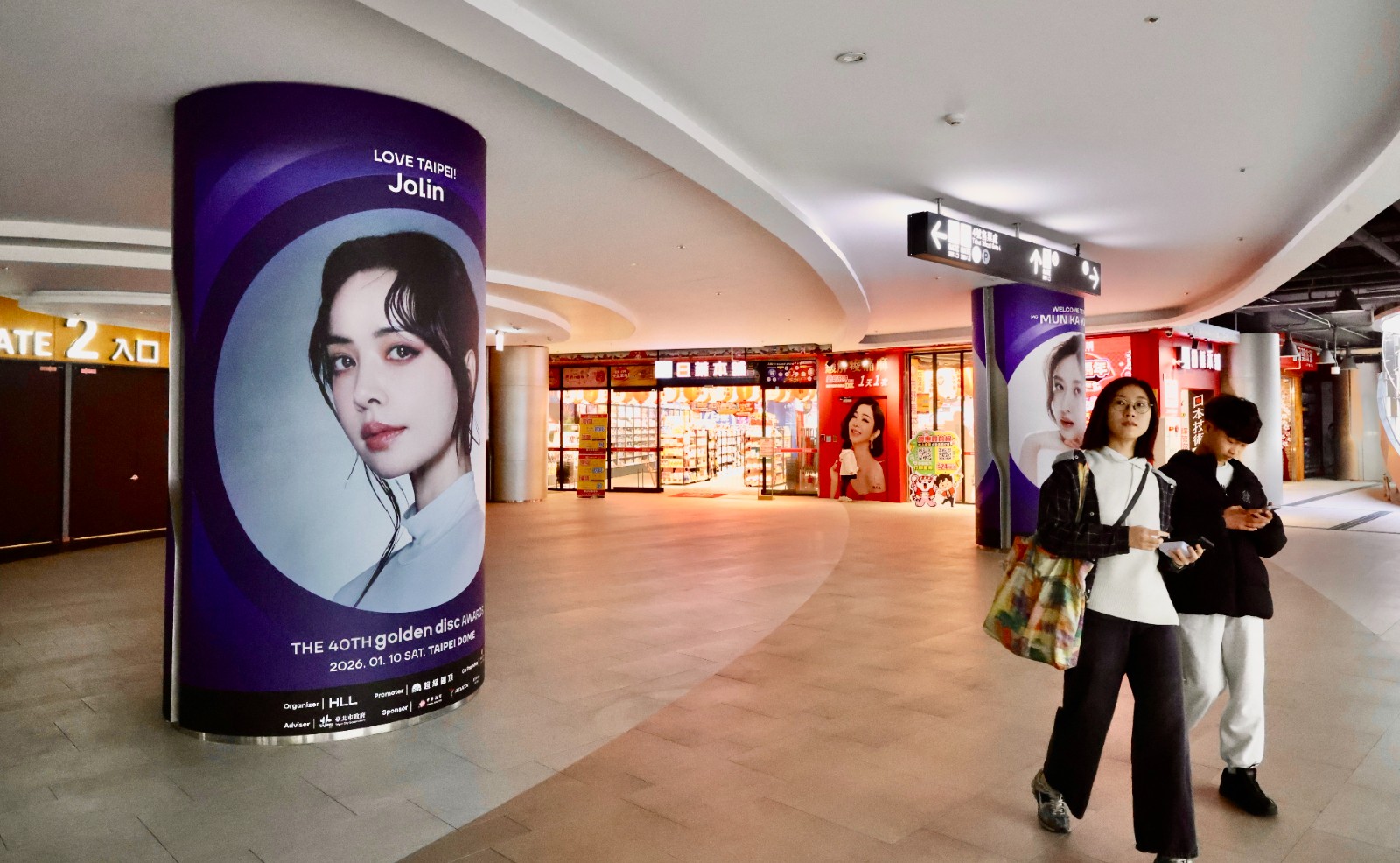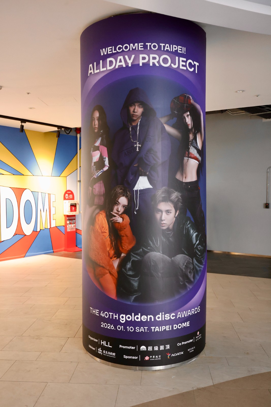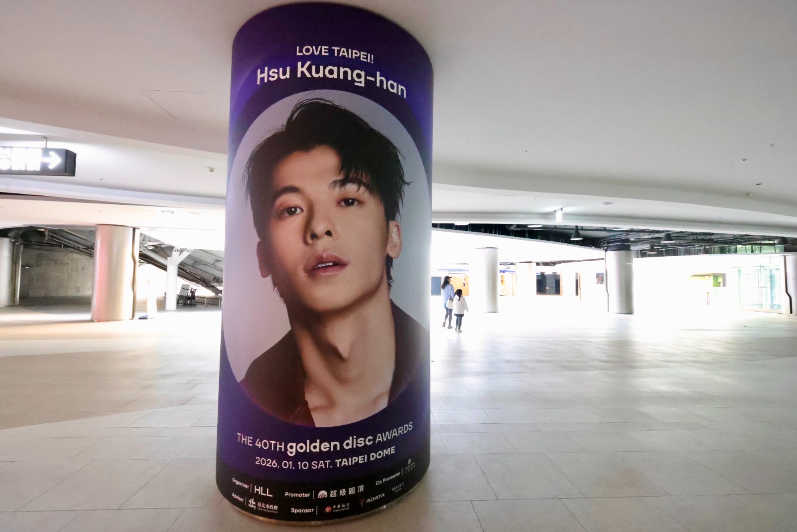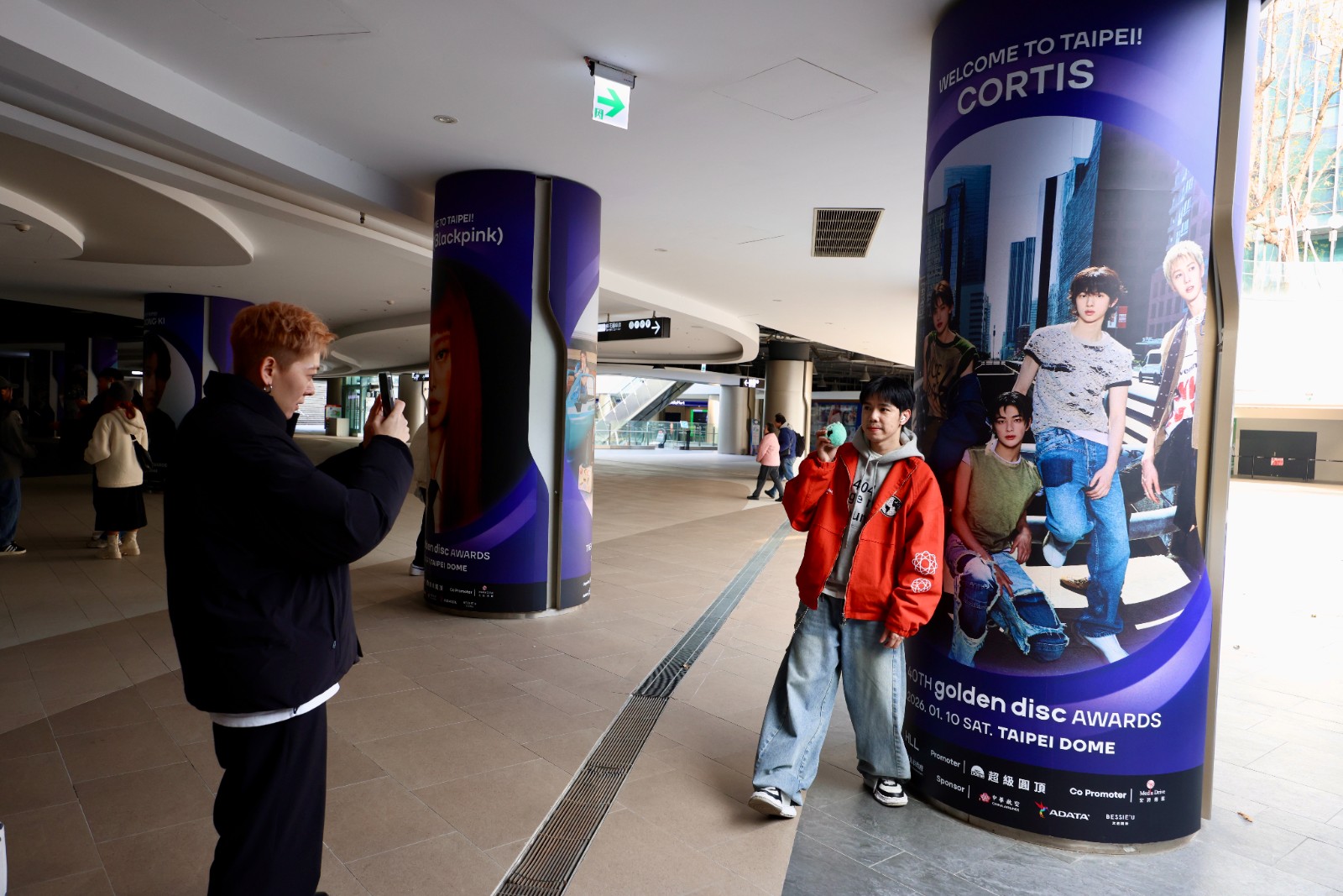 第40屆金唱片獎本週末(1/10)將在台北大巨蛋登場,主辦單位昨(1/7)日完成大巨蛋外圍柱面布置,包含Jennie、蔡依林、許光漢、邊佑錫、CORTIS等人柱面一字排開,吸引不少粉絲在上下班時段直奔現場拍照留念,典禮倒數儀式感瞬間拉滿。
