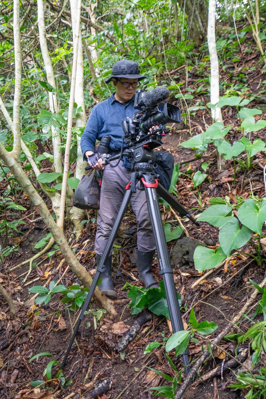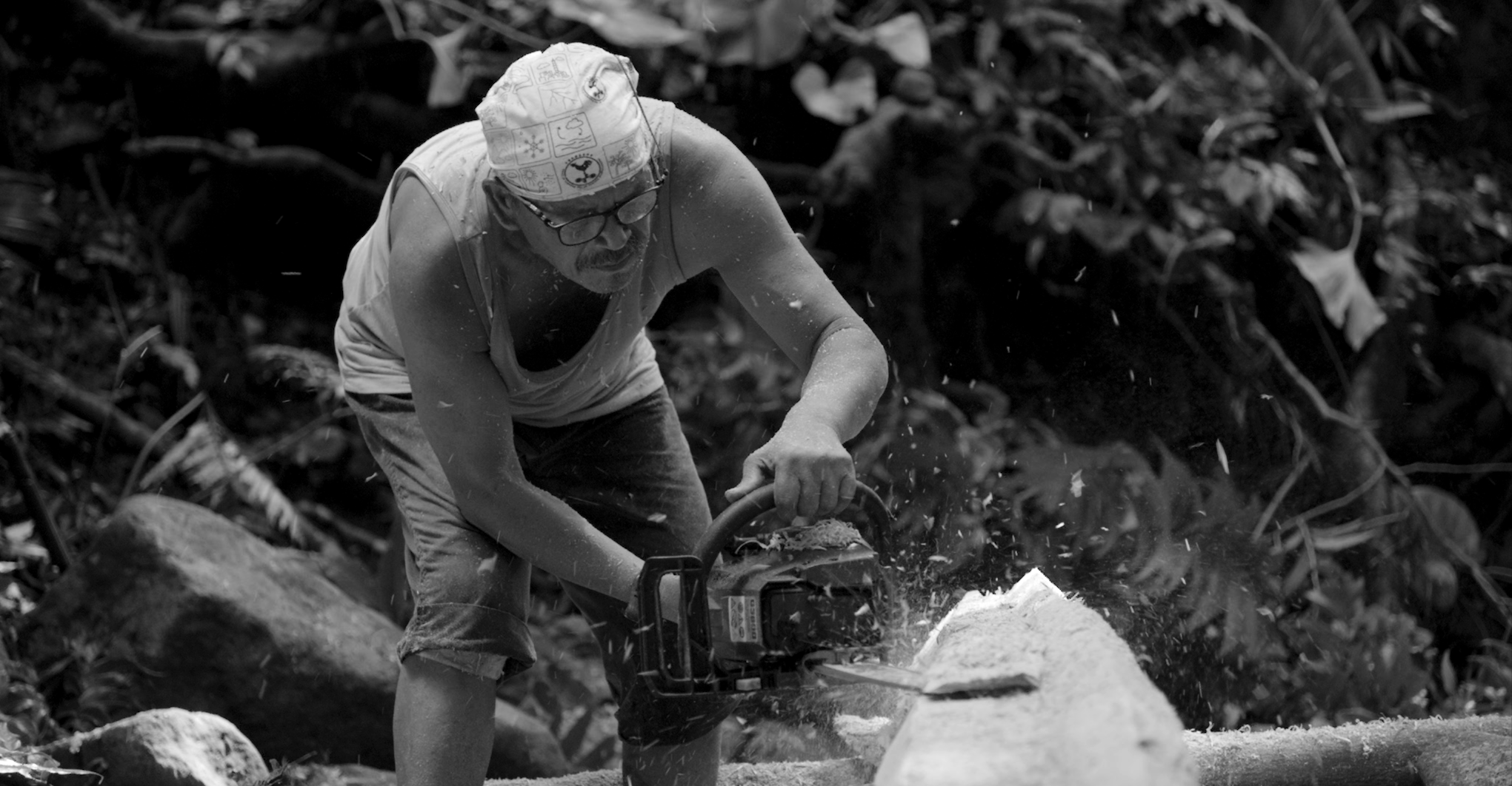 跟著夏曼‧藍波安父子上山砍樹的周文欽,他透露,其實自己很怕蟲。目宿媒體提供