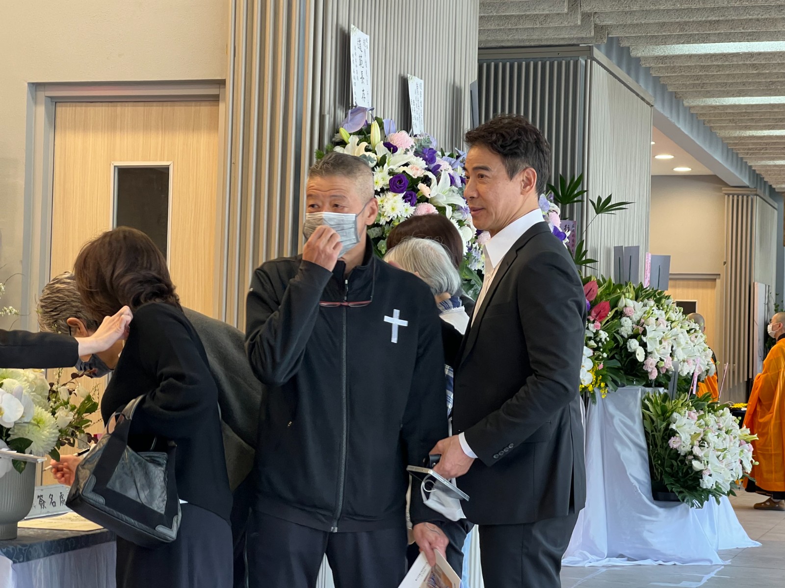 「花系列」資深演員趙學煌1月10日病逝,享壽69歲,今(1╱25)上午11點30分在台北市懷愛館景行樓一樓「至忠二廳」舉行追思會,寇世勳和兒子寇家瑞、翁家明、李亞明、王淑娟都到場致哀,楊貴媚雙眼紅腫送別老友。