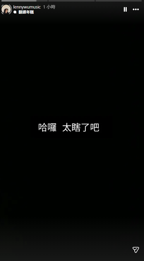 伍諒在IG限動喊話「太瞎了吧」。翻攝自IG@lennywumusic