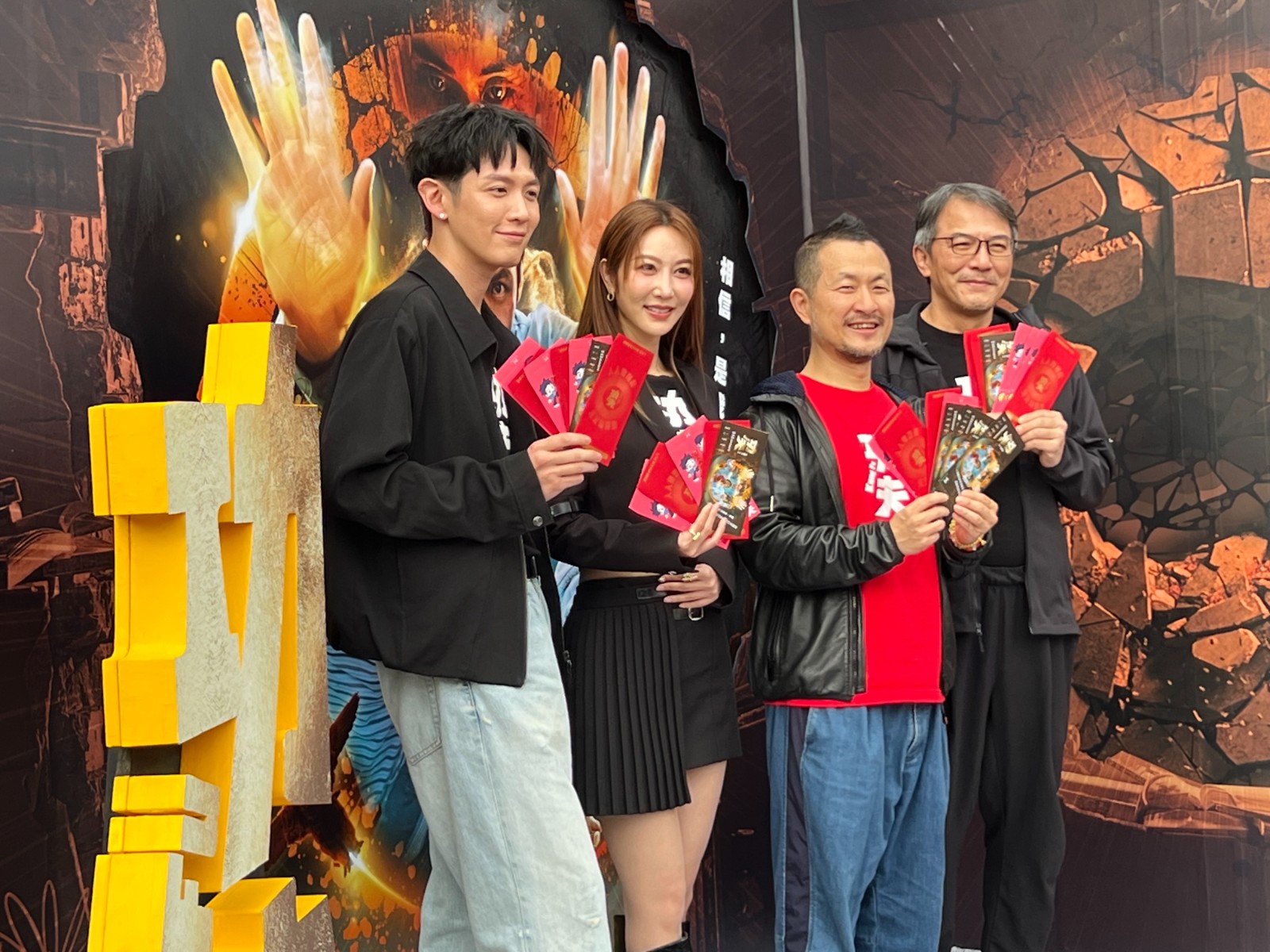 柯震東(左起)、曾莞婷、九把刀、戴立忍出席《功夫》接招見面會送影迷紅包袋。黃于珊攝