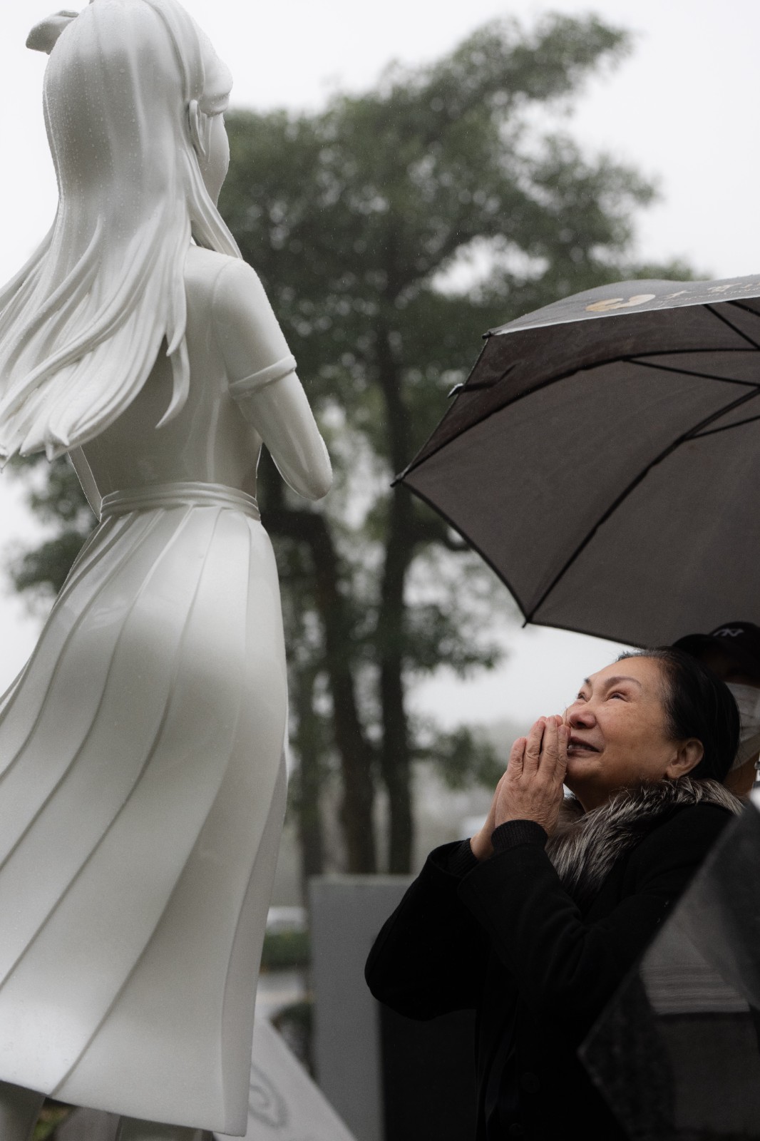 S媽含淚望著大S雕像。經紀公司提供