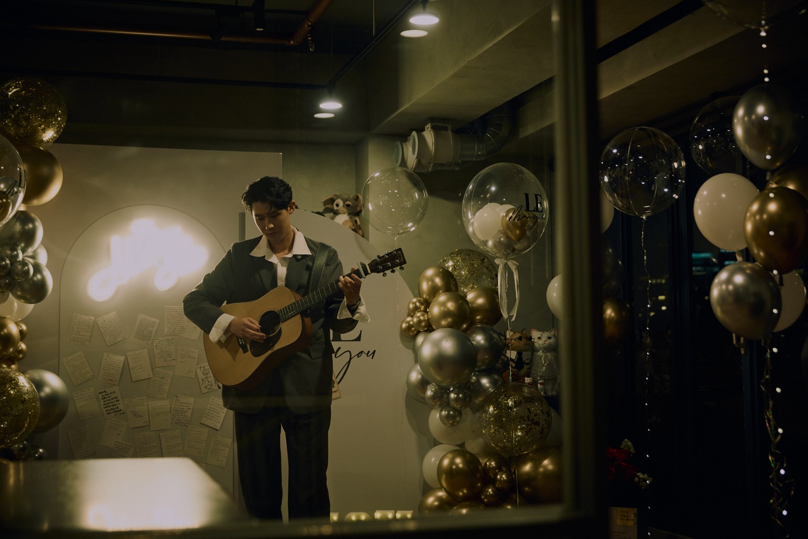 李玉璽與大6歲的許允樂結婚2個多月,自創求婚曲〈剛剛好〉明(2╱13)上架,憶及正式求婚當天因太過緊張,他笑說自己唱得不太好、歌詞也有些混亂,結果老婆給他的第一個回饋竟是「可以再唱1次嗎」?讓這一刻留下溫暖又真實的記憶。