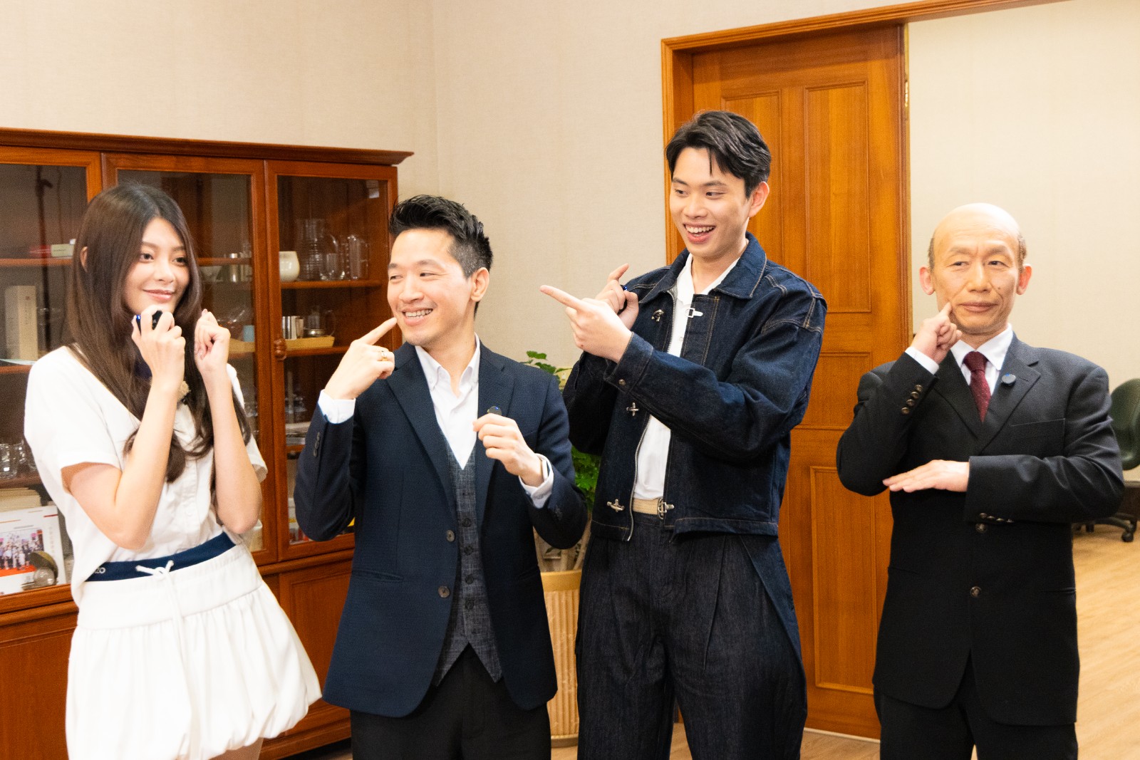 何志偉(左二)和郭子乾(右)挑戰撒嬌舞。《鄉民大學問》提供