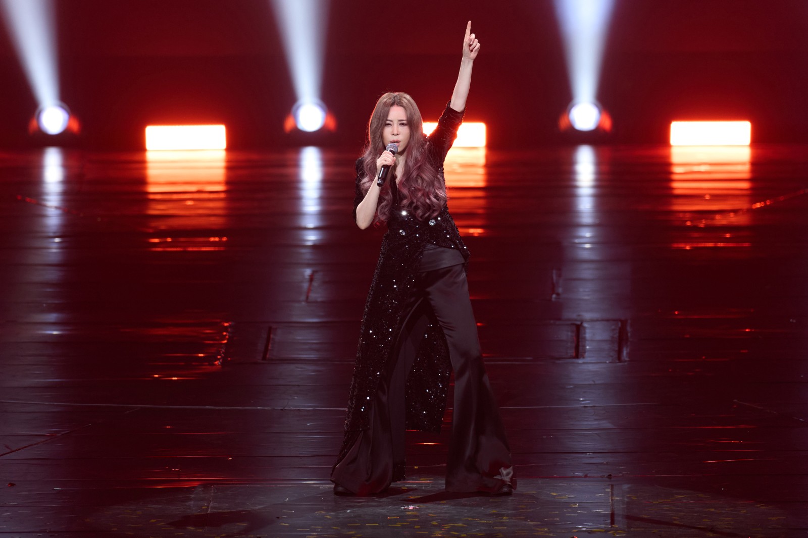 江蕙站上象徵音樂流動的音符造型推台繞場。寬宏藝術提供