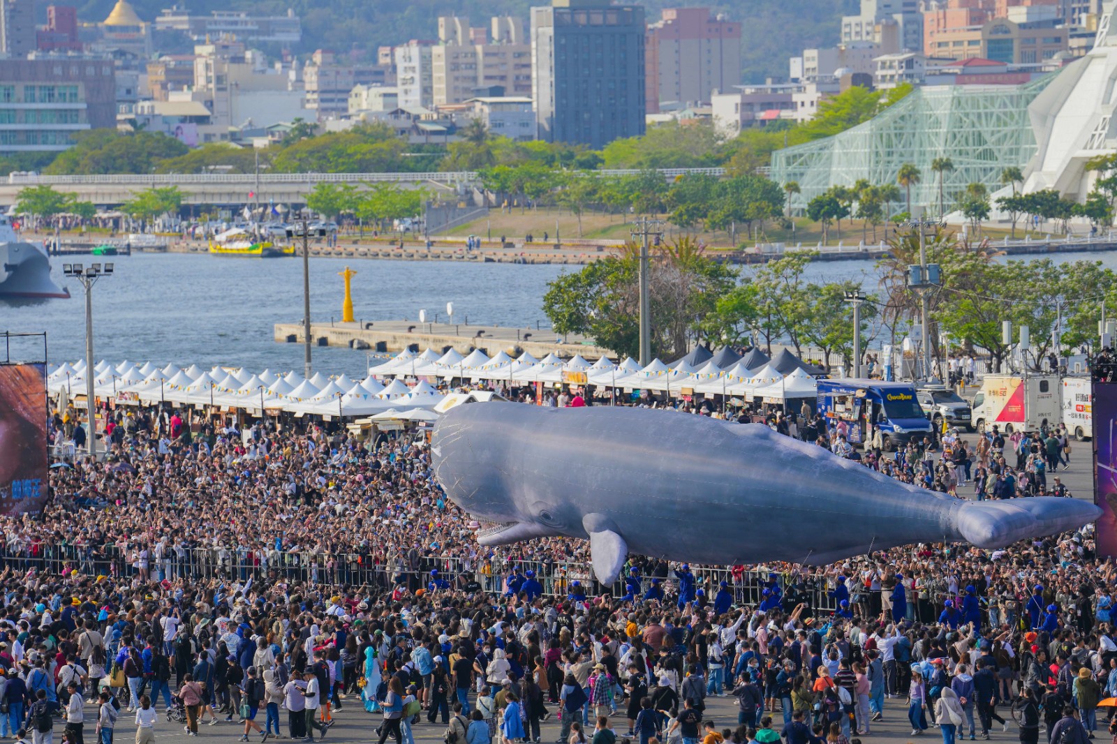 「媽祖護航!草帽海賊大遊行」巨鯨拉布登入高雄港灣。Netflix提供