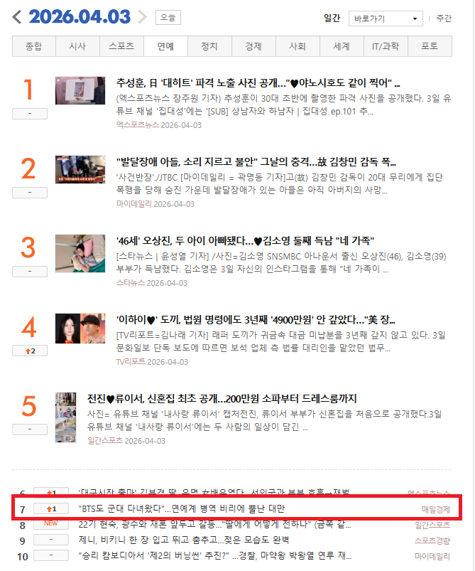 報導特別提到,BTS從2022年12月成員Jin入伍開始,全員於去年6月完成兵役。之後不僅在美國告示牌(Billboard)登上冠軍,主打歌也登上「Hot 100」榜首,入伍、服役、退伍,之後人氣更高,藉此對比台灣閃兵藝人,格外發人深省。