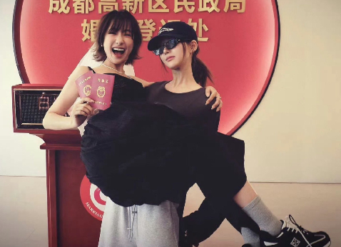 女星趙露思的閨蜜魏笑領證,趙露思暫停工作陪同,還拍出一組搞笑又溫馨的照片。取自微博