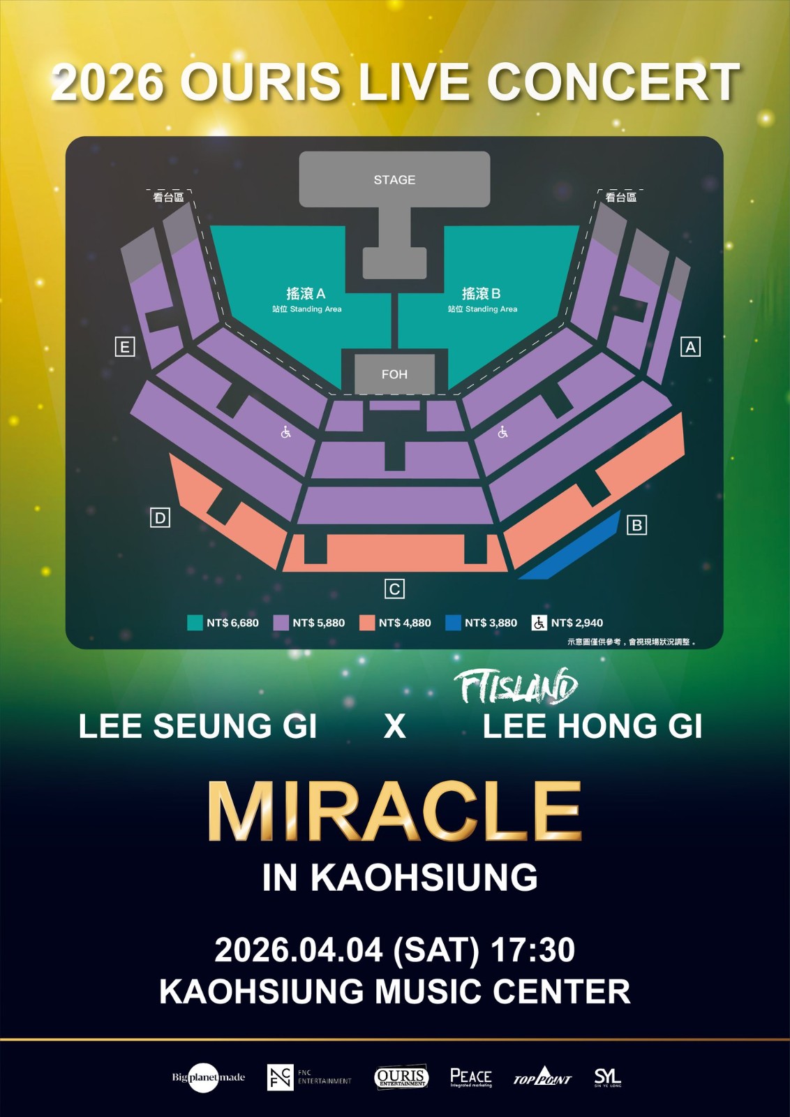 《2026 OURS LIVE CONCERT [MIRACLE] IN KAOHSIUNG》購票資訊: