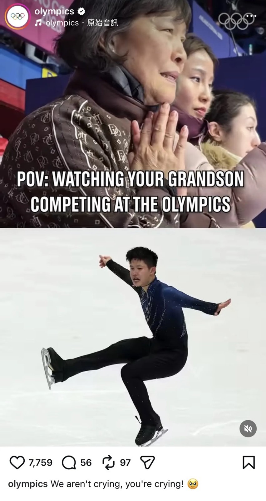 奶奶在場邊為李宇翔加油的畫面,也被官方捕捉下來。翻攝自IG@olympics