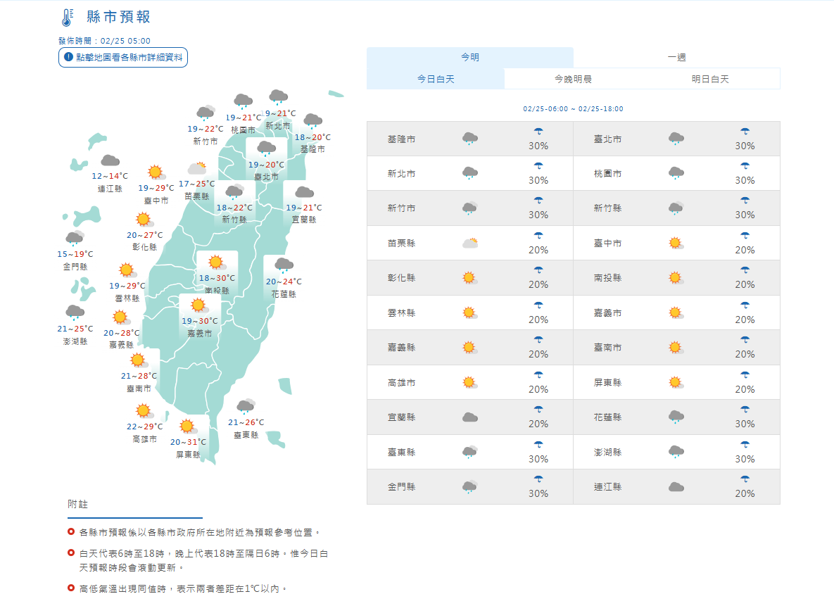 縣市預報。氣象署提供
