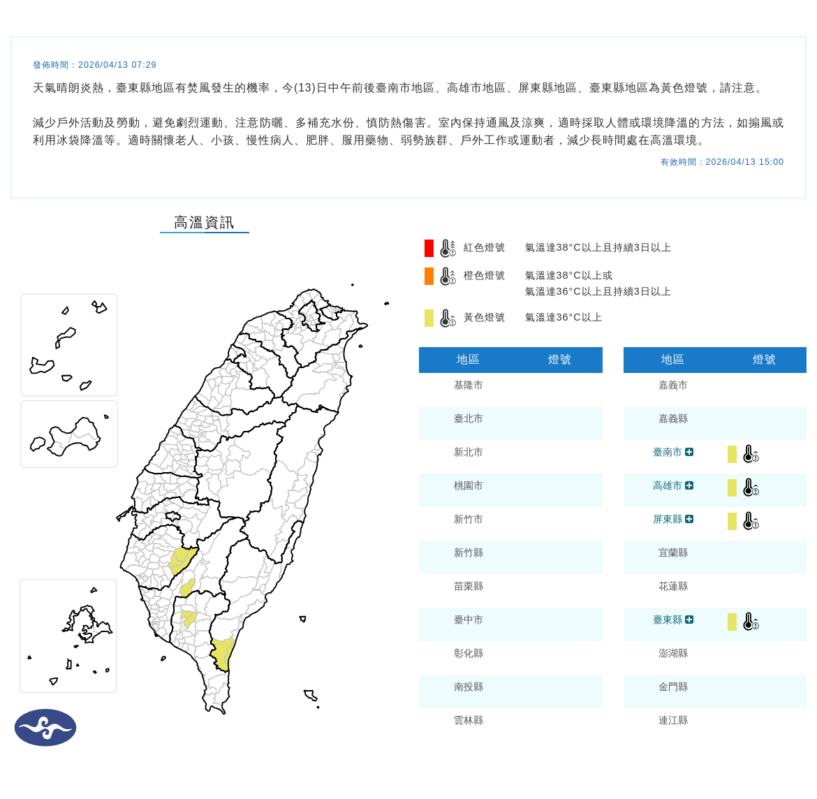 高溫資訊。氣象署提供
