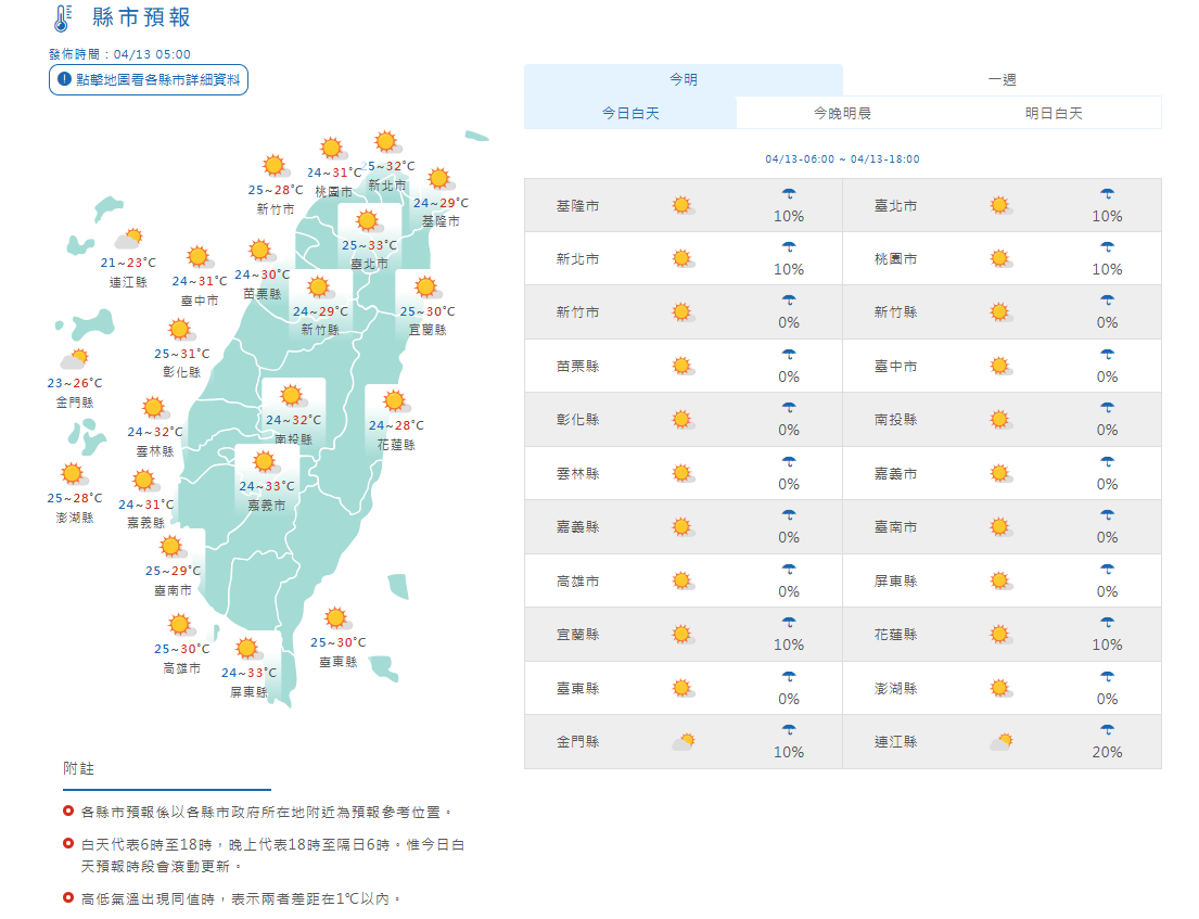 縣市預報。氣象署提供