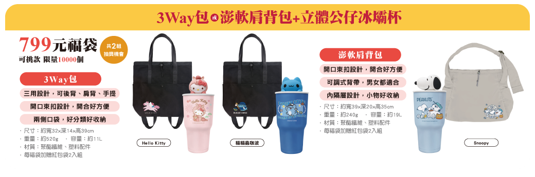 799元福袋款式及內容。翻攝官網