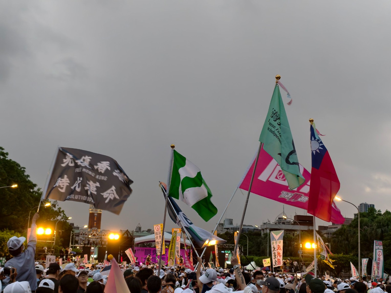 今年7月間大罷免活動,公民團體於凱道揮舞挺香港旗幟、中華民國國旗、台獨旗。陳祖傑攝