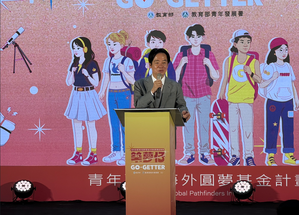 賴清德總統2025.12.11出席教育部青年發展署舉辦的「青年百億海外圓夢基金計畫成果交流活動」開展記者會。郭宏章攝影