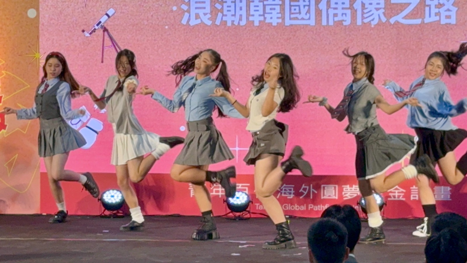 申請教育部「青年百億海外圓夢基金計畫」,赴韓國學習K-POP「潮流韓國偶像之路」的青年圓夢代表們2025.12.11在成果發表展記者會上表演舞蹈。