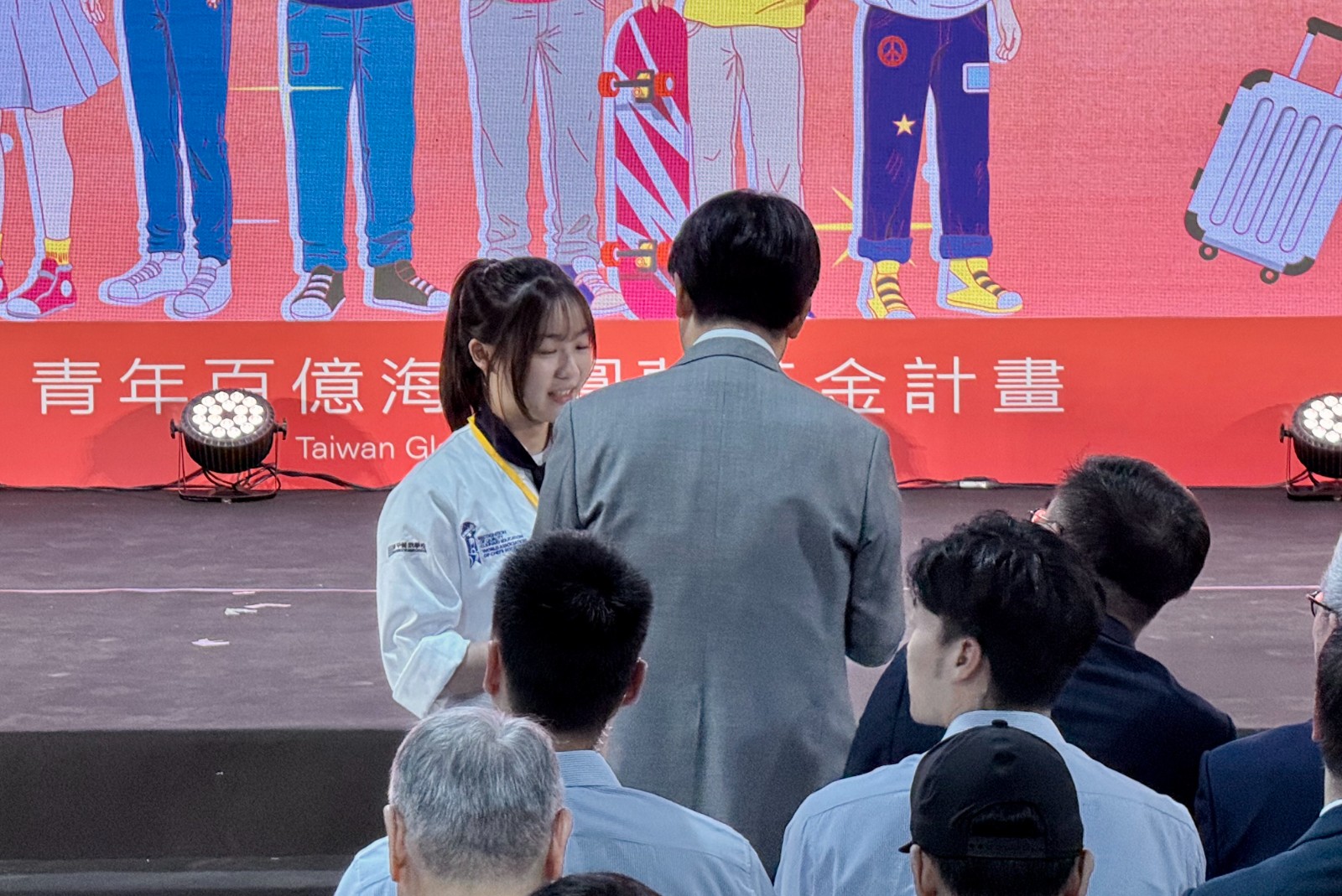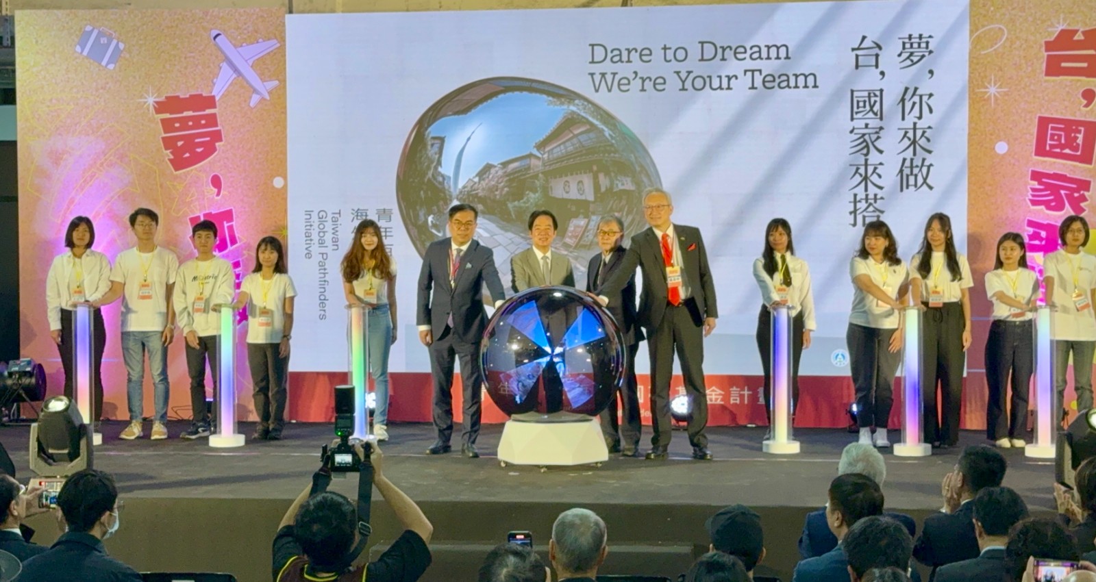 賴清德也表示,希望能讓年輕人能主動來看一看,自己有什麼樣的夢想,可以應用的上、站上政府所打的舞台,然後到海外去開拓視野看一看,也非常希望家長能來看一看,現在的年輕人已經不一樣了,「如果這些年輕人有這樣的想法,就可以去逐夢的話,那你的孩子可不可以?你的孩子一定可以!」