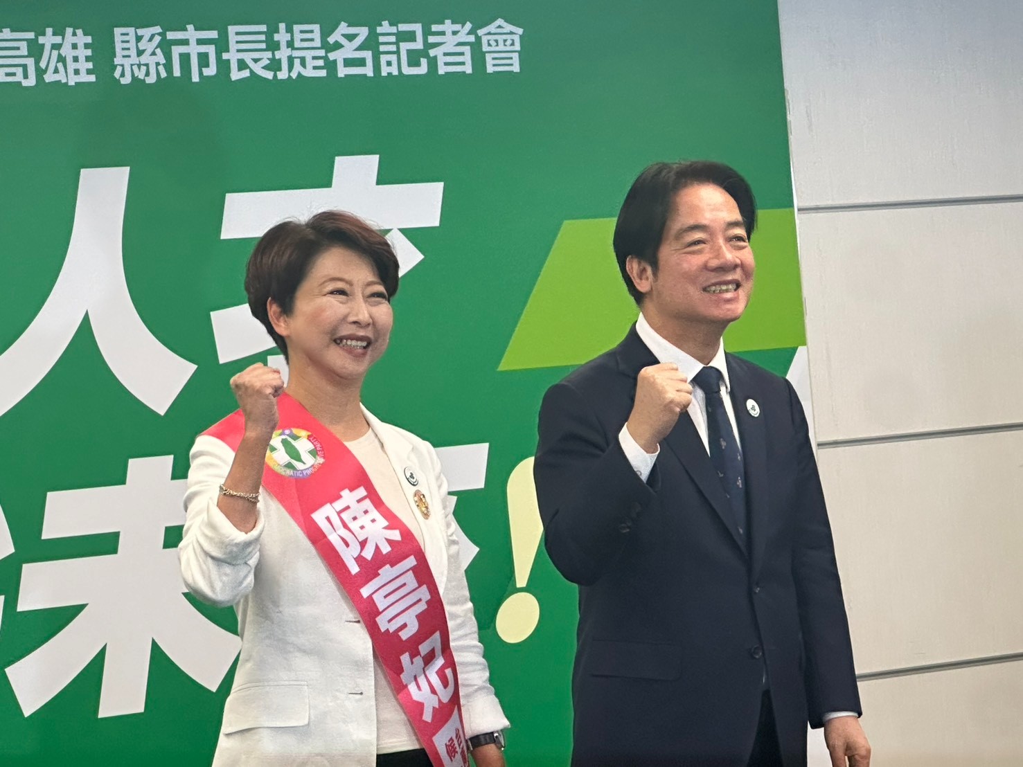 三縣市正式提名!賴清德親為陳亭妃披競選背帶 握手喊凍蒜