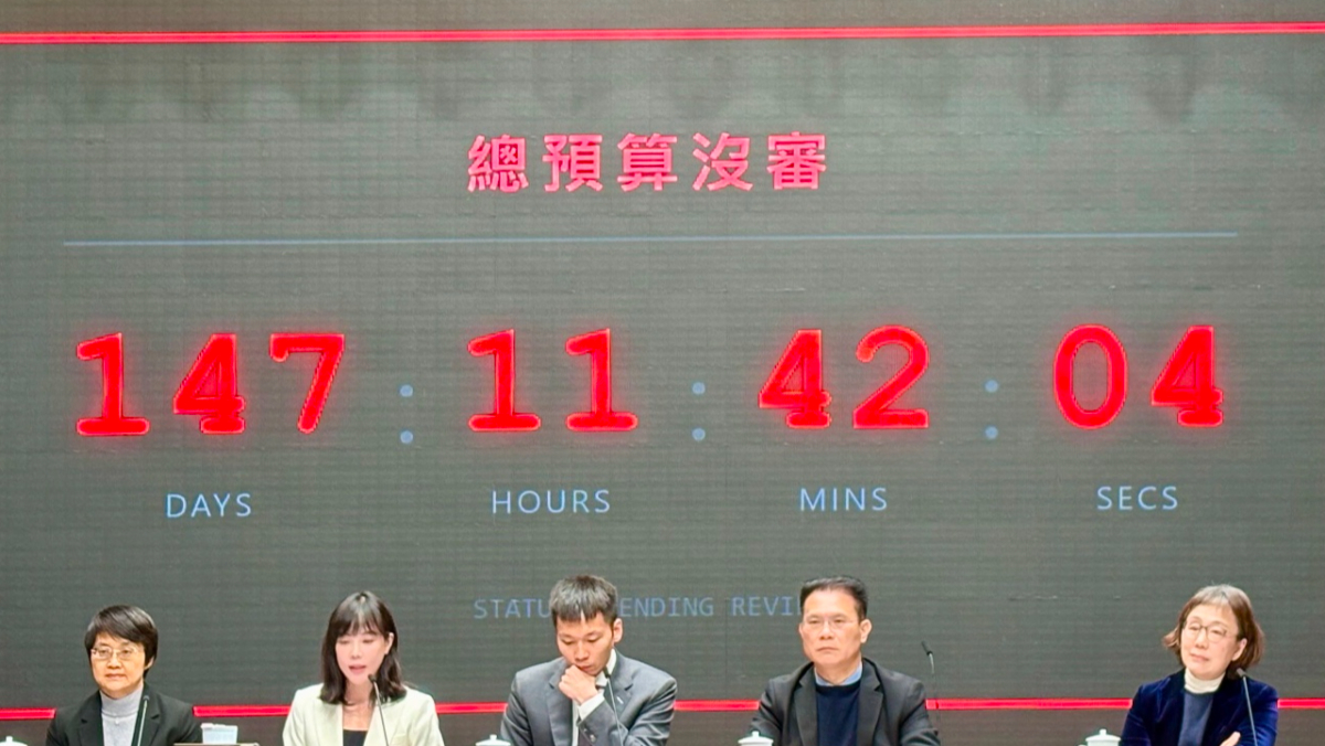 行政院日前在院會後記者會秀出「總預算未審查」的大型計時器。李佳穎攝(資料照)