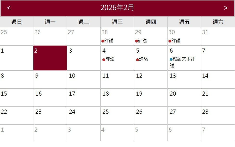 憲法法庭行事曆預告,2/6可能又有新判決。本報繪製。