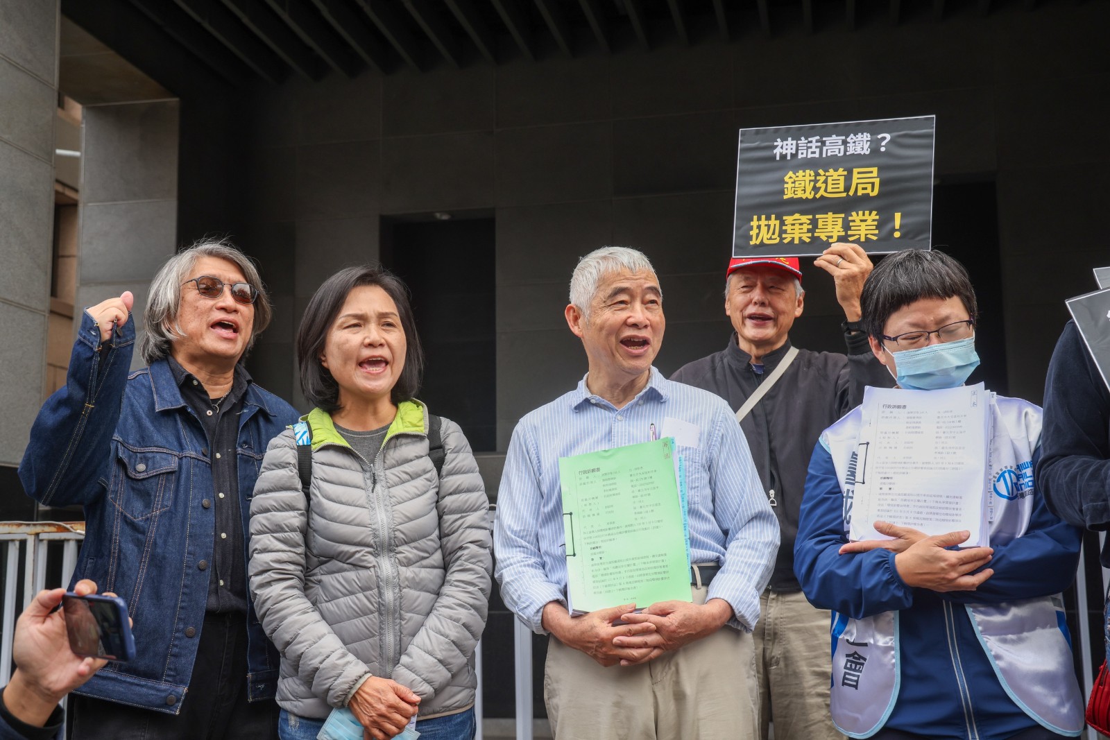 公民幫推、高鐵延伸宜蘭監督聯盟「高鐵延伸宜蘭訴願」記者會,賀陳旦(右二)等人向環境部提出訴願。廖瑞祥攝