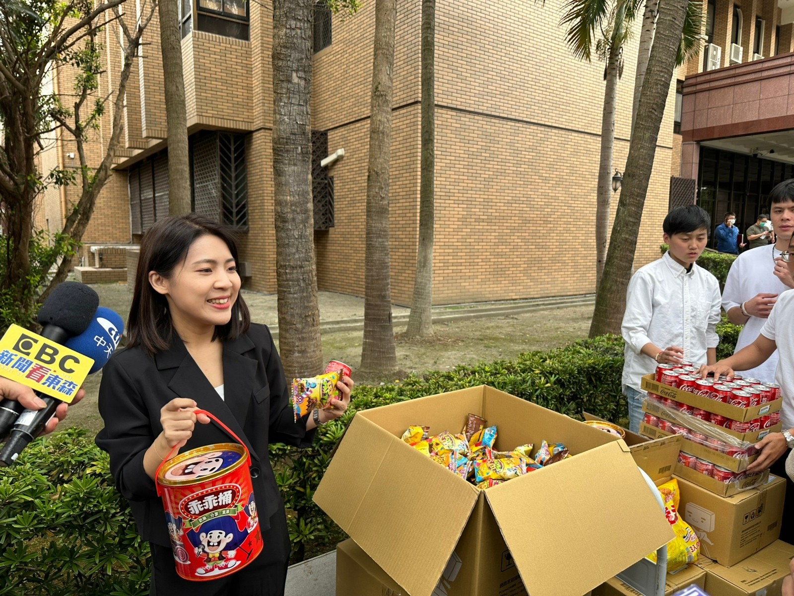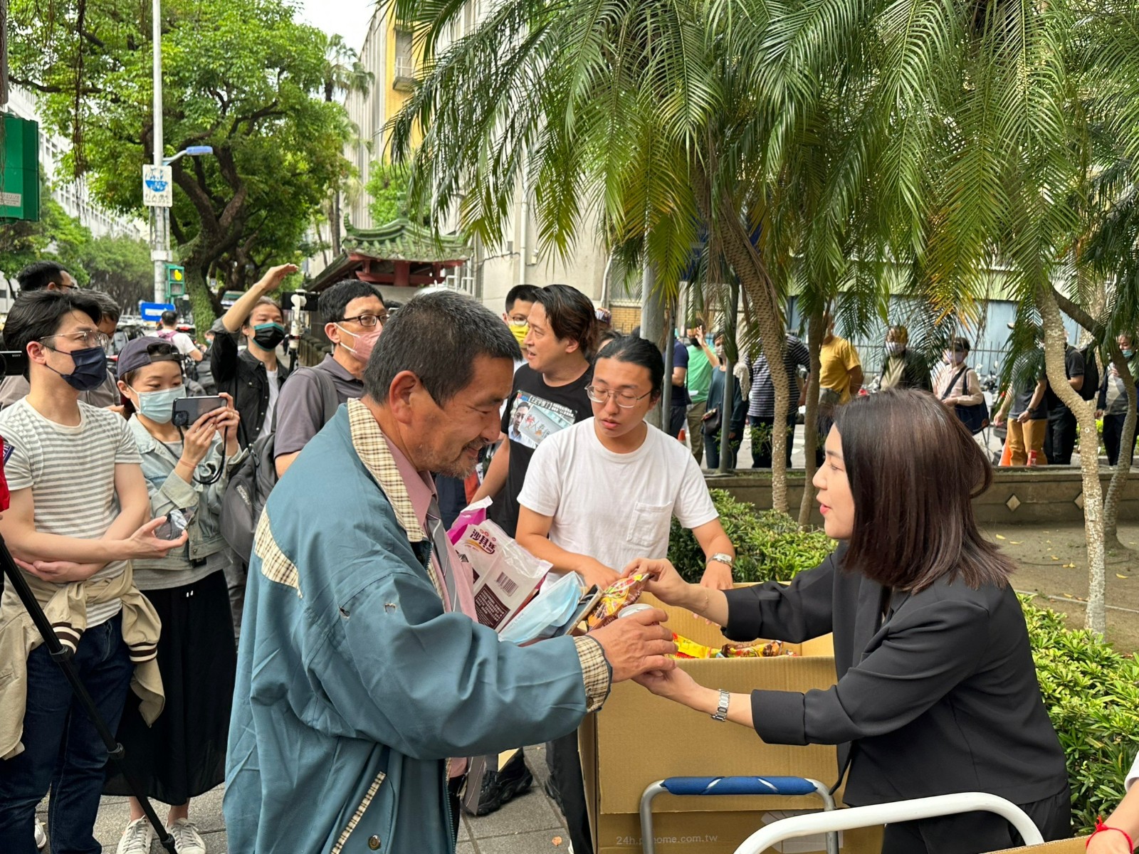 徐巧芯告無良公關案首次開庭時,她還在北檢外發爆米花、可樂。資料照。侯柏青攝