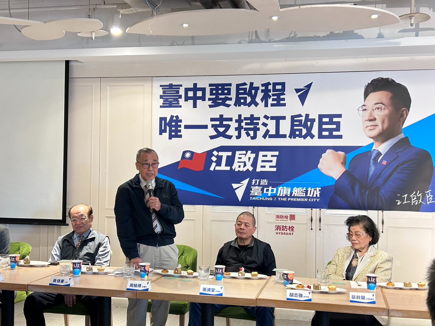 國民黨台中市長黨內初選電話民調月底將舉行,今日(3/12)國民黨多位原台中縣紅、黑派大老共同召開記者會,明確表態唯一支持立法院副院長江啟臣參選台中市長,前台中市長胡志強、黑派立委顏寬恒也出席力挺。江啟臣本人則因接待西班牙國會議員訪問團,並未出席現場。