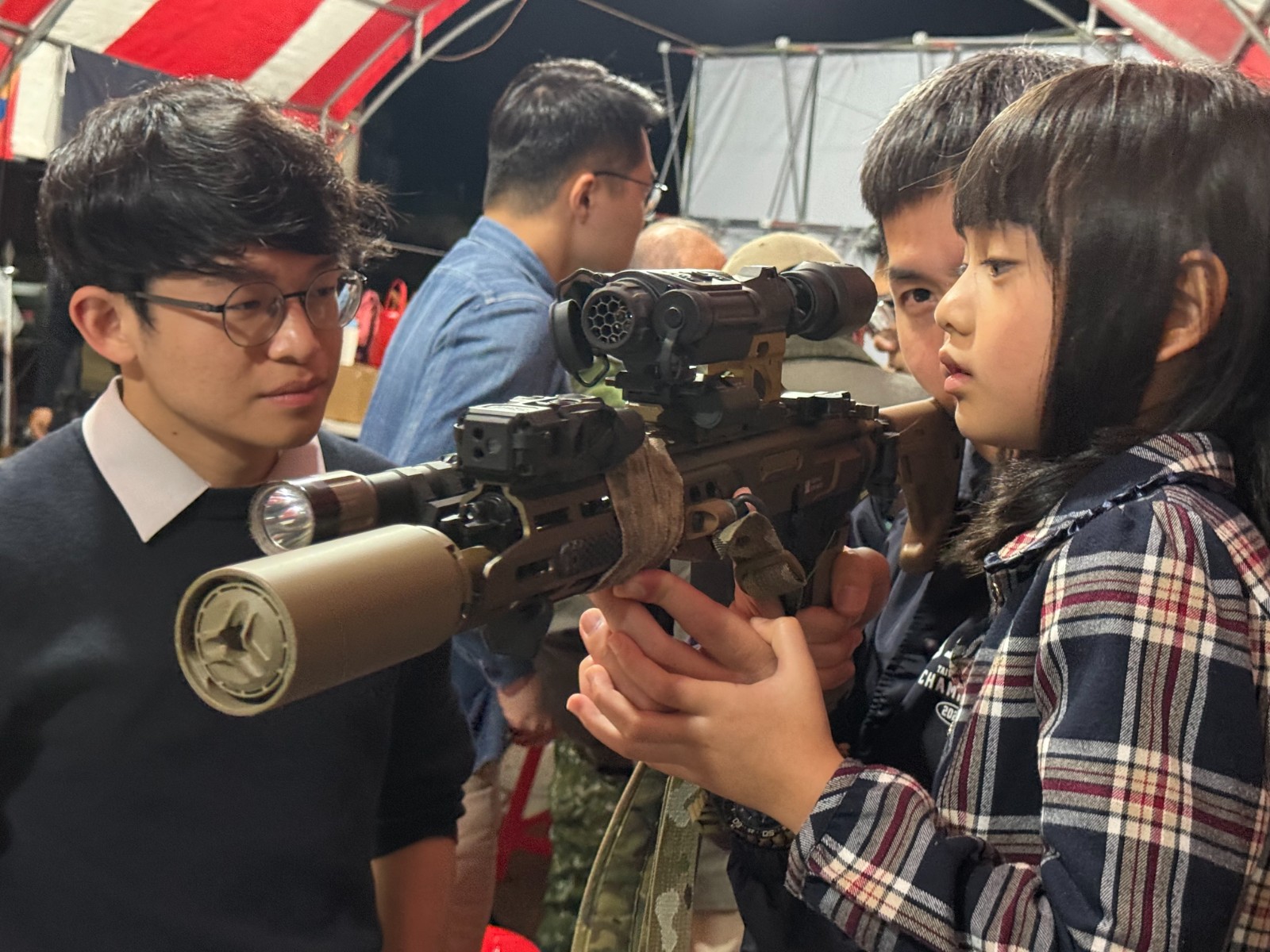 參與「月光行動9」的生存遊戲隊伍OPS Team於2026.3.28「月光行動9」台中場當中展示配備夜視鏡、熱顯像儀的BB槍(空氣軟槍),提供民眾體驗,推廣全民國防的知識。郭宏章攝