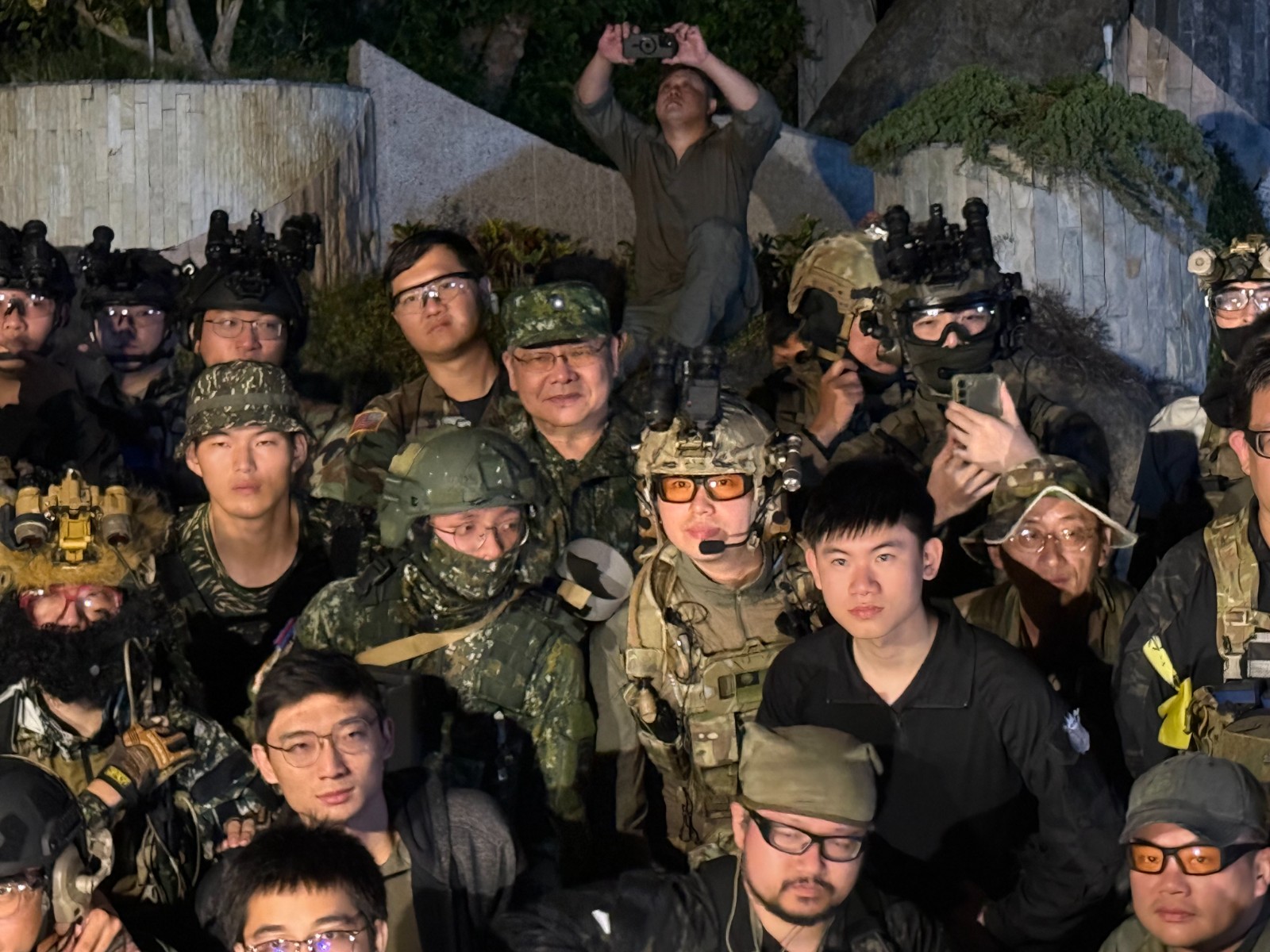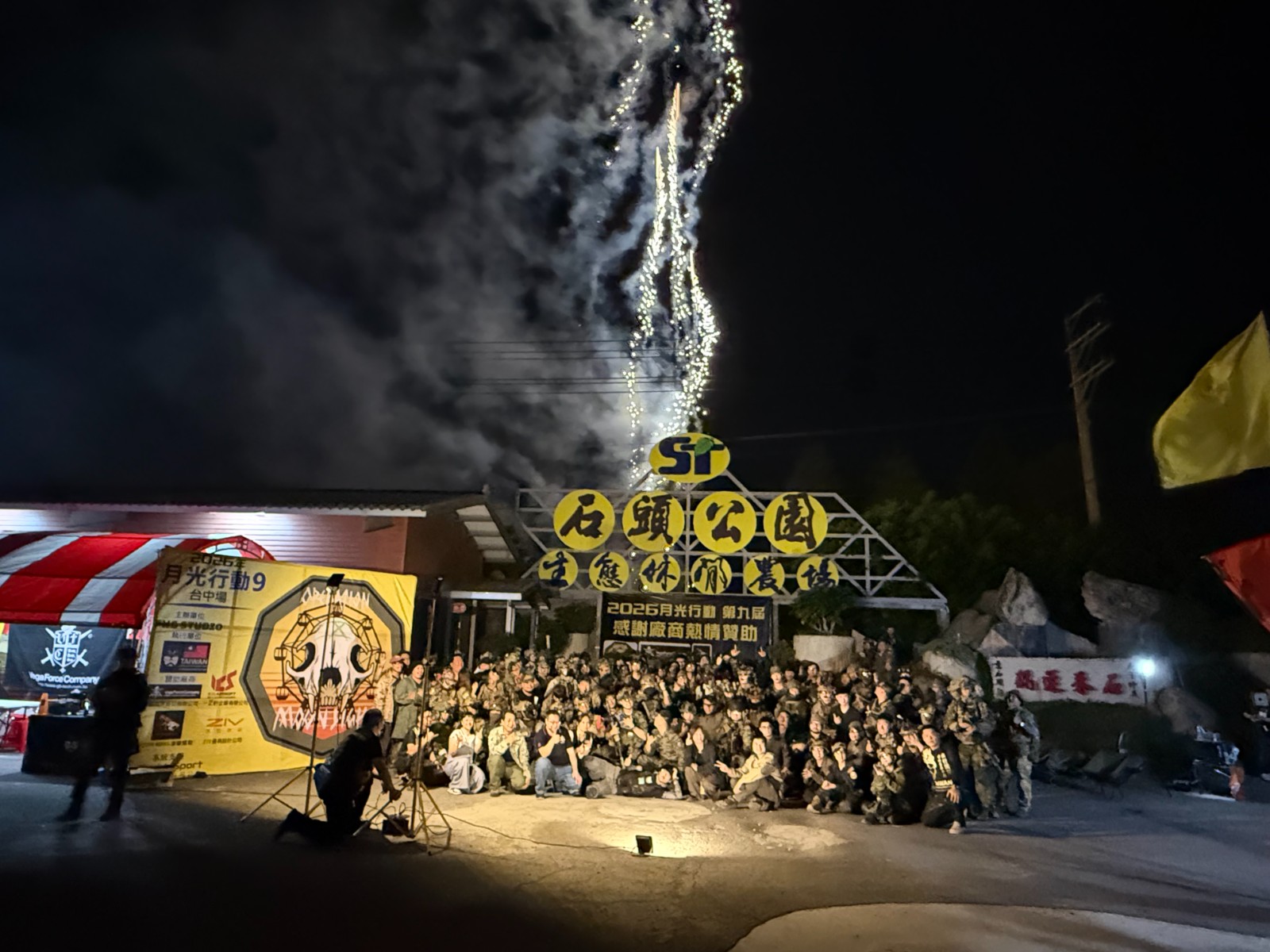 參與2026年「月光行動9」台中場的生存遊戲玩家們,齊聚台中外埔「石頭公園」,在第二階段夜戰開打前大合影,這項「類軍事行動」強調夜戰的行動,必須準備夜視鏡與熱顯像系統等裝備,才能掌握作戰優勢。郭宏章攝