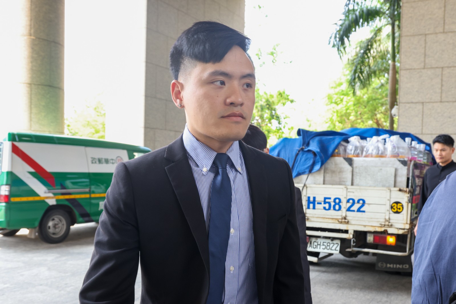 前台塑集團總管理處總經理楊兆麟出庭,因不堪負荷提前離庭。廖瑞祥攝