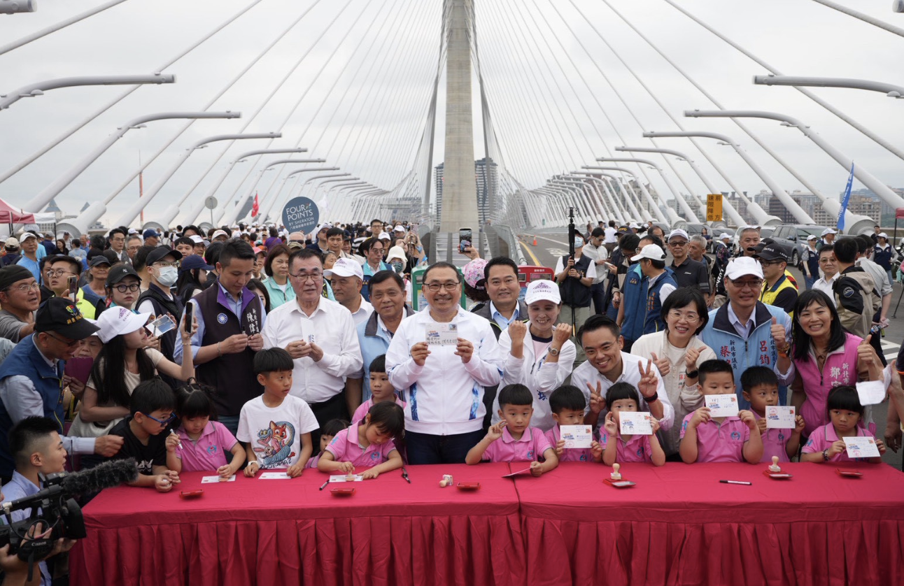 新北市政府今天(4/17)下午舉行「淡水八里.橋見未來」淡江大橋通車前首場暖身活動,市長侯友宜與在地鄉親及上萬市民,共同走上這座世界級的單塔斜張橋,國民黨新北市長參選人李四川與民進黨新北市長參選人蘇巧慧,也到場見證北台灣交通建設的重大里程碑。