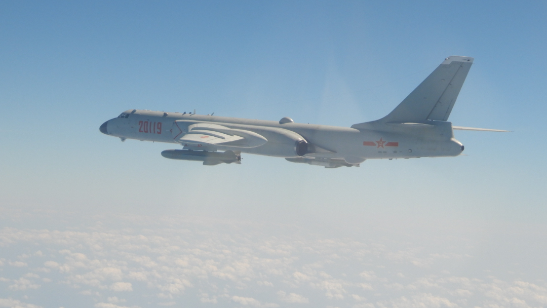 國防部6/23公布中共過去24小時在台海周邊海空域動態,國軍總共偵獲9架次的中共軍機以及5架次的中共軍艦,在台海周邊活動。圖為中共轟-6轟炸機,據稱日前以射控雷達照射美國航艦雷根號引發緊張。國防部資料照片。