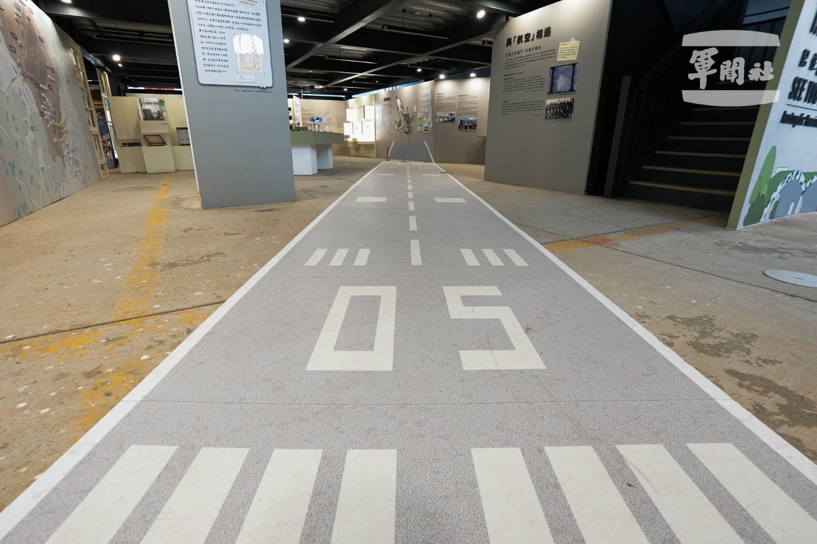 「再・見航空城」地面以「05–23」跑道引領觀眾認識航空城。軍聞社記者李恬恬攝